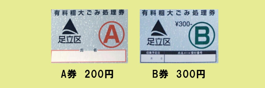 申し込み時の案内にしたがって、粗大ごみシールを購入します。粗大ごみシールはA券(200円)とB券(300円)の二種類があり、それぞれの必要枚数を購入しましょう。最寄りのコンビニや郵便局で購入することができます。
