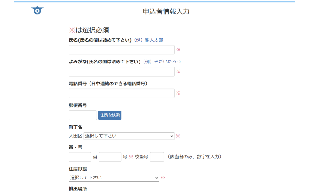 まずは申請者情報(氏名・住所・連絡先)を入力する