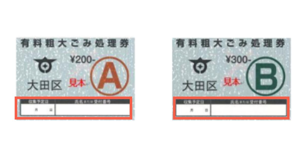 レジで「大田区の有料粗大ごみ処理券を、A券◯枚・B券◯枚ください」と伝えればOKです。