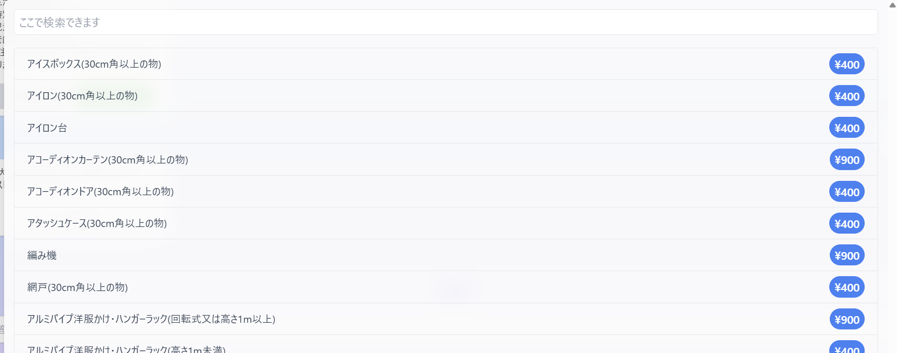 なお、粗大ごみの処分には有料の粗大ごみ処理券が必要です。品目ごとの料金は下記の記事でまとめています。