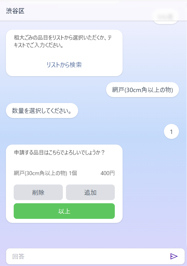 申し込み完了後、品目ごとの手数料と合計金額が案内されます。収集日までに、案内された金額分の有料粗大ごみ処理券(A券200円/B券300円)を渋谷区内の取扱店で購入しましょう。