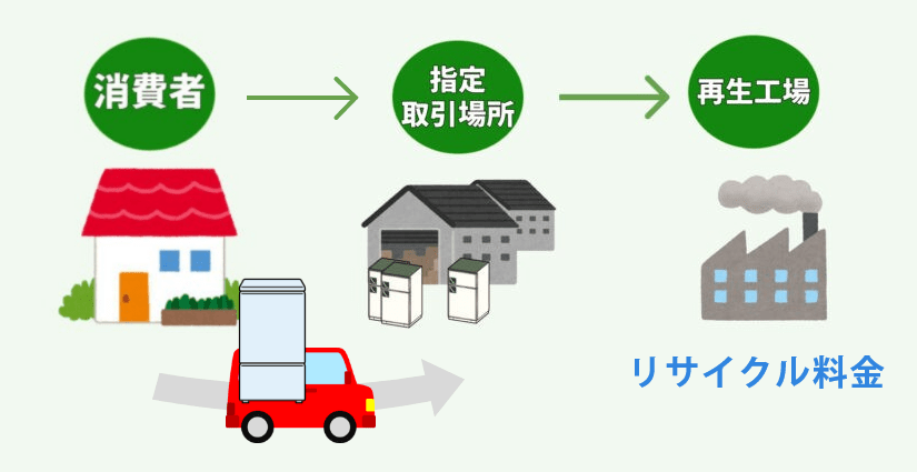 私たちが廃棄処分した冷蔵庫は、家電量販店や収集運搬会社が引き取られ、各地域の「指定引取場所」に集められます。冷蔵庫を排出する場所から指定引取場所まで運ぶ料金が収集運搬料金です。