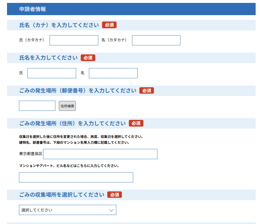 まずは申請者情報(氏名・住所・連絡先)を入力する