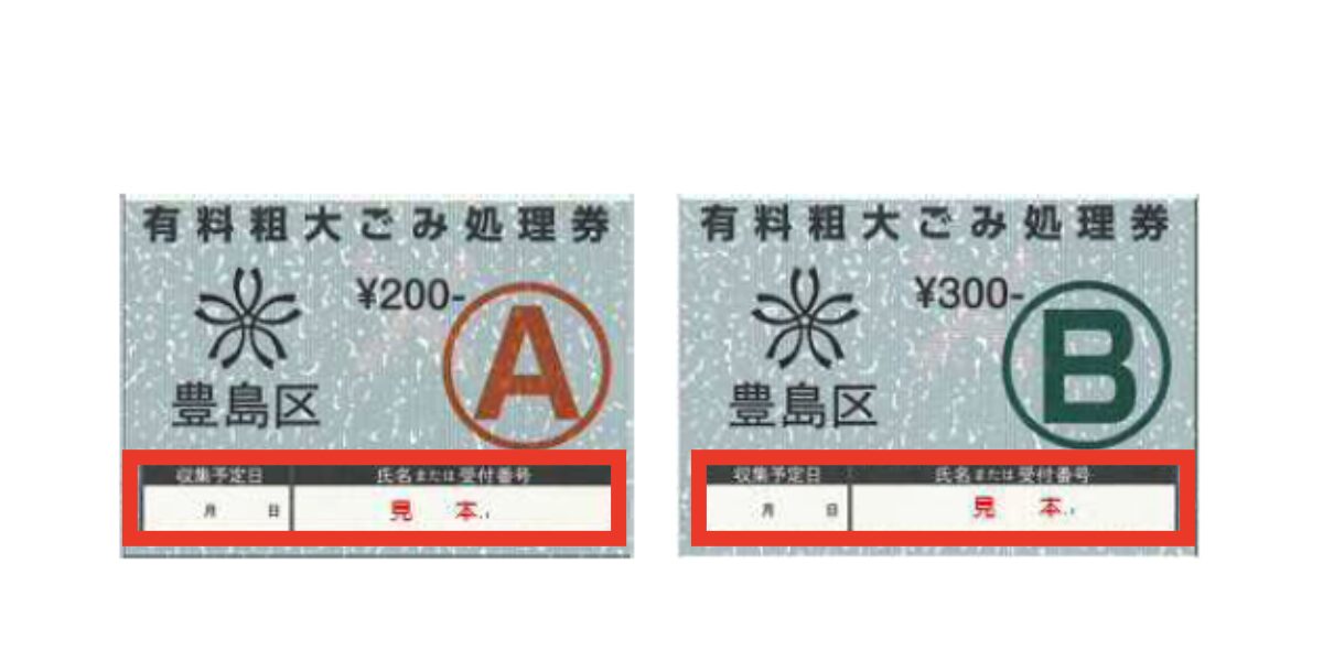 レジで「豊島区の有料粗大ごみ処理券を、A券◯枚・B券◯枚ください」と伝えればOKです。